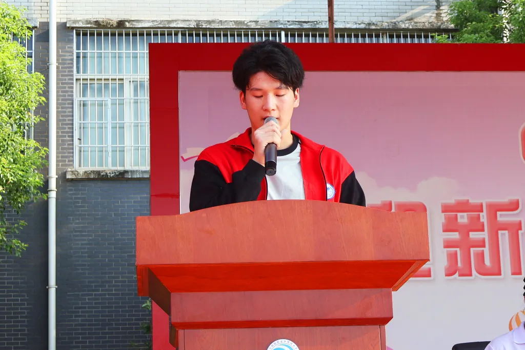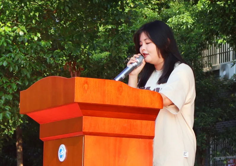 教师代表余爽老师上台发言。她以温柔而坚定的声音,向同学们传达了教师的期望与关怀。余老师强调了学习的重要性,鼓励同学们保持好奇心,勇于提问,同时也强调了品德修养的重要性,希望同学们在追求学业进步的同时,也要注重个人品德的培养。她的发言温暖而有力,让在场的师生深受感动。