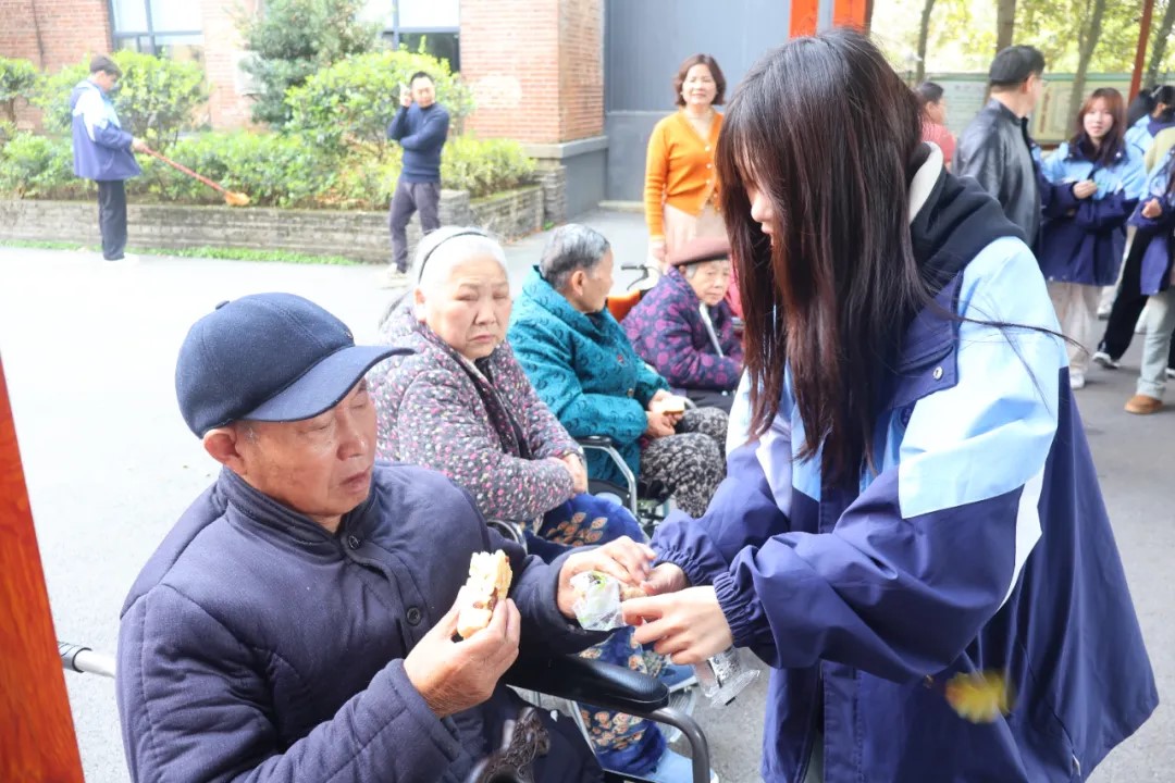 表演完后,同学们给爷爷奶奶们送上了精心准备的小蛋糕和牛奶以表心意,有些同学们则陪爷爷奶奶们聊着天,老人脸上都笑开了花,一片其乐融融的景象!
