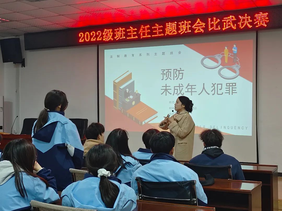 为促进班主任技能成长,提高班主任组织和开展主题班会的能力,让学生在班会活动中收获知识、提高综合素质。12月底开展了“2022级班主任思政班会竞赛活动”,经过激烈的角逐,初赛落下帷幕,六位选手进入决赛。1月10-11日,决赛正式开始,六位选手各展所长,为同学们呈现了六场主题鲜明、内容丰富的班会。